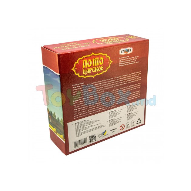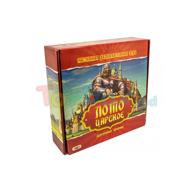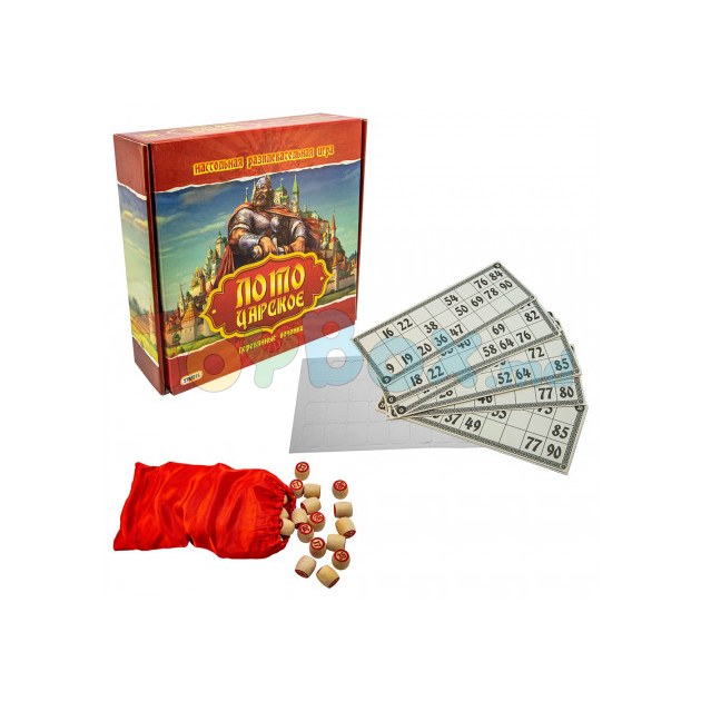 Lotto „Tsarskoe” (Strateg 342) a fost creat în cele mai bune tradiții ale acestui joc. Setul include 24 de cărți de joc, butoaie din lemn cu numere într-o pungă, jetoane. În funcție de preferințe, puteți alege oricare dintre opțiunile de joc - completarea unei cărți, completarea a două cărți, completarea unei linii și așa mai departe. Personajele determină, de asemenea, formatul jocului - pentru distracție sau cu un fond de premii, care, desigur, va adăuga entuziasm jocului și îl va face mai intens. Lotto se află într-o cutie colorată și este perfect ca cadou pentru orice ocazie.