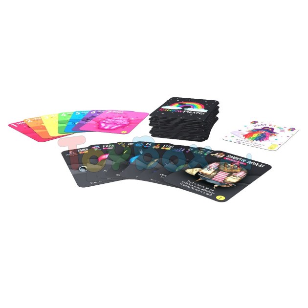 По очереди стройте радуги и размещайте группы карт на своем «острове» , играя в пиратские карты, чтобы атаковать противников и пользоваться преимуществами! Блокируйте действия пиратов (ужасные дела, такие как воровство, шпионаж и взрывы), исполняя жгучие желания их черных и холодных сердец (жемчужные ванны, душ с блестками, мое время и т. д.) !